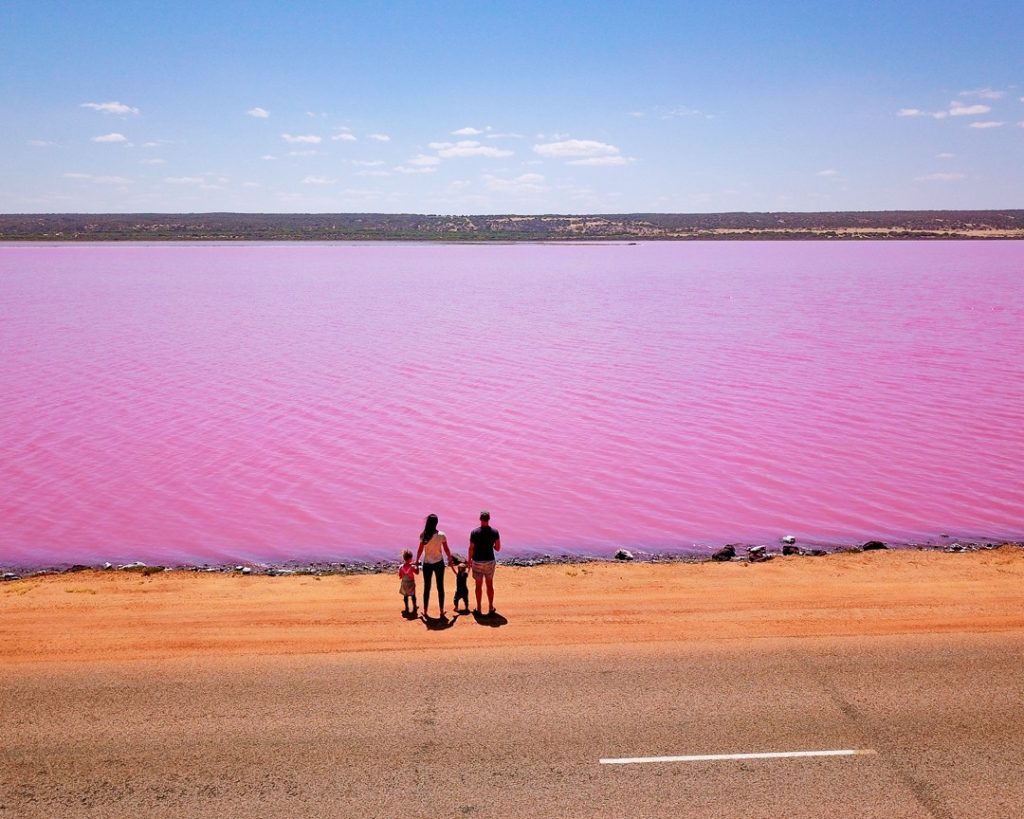 Less than an hours drive away is Lake Hutt a Pink Lake known as Hutt Lagoon, although not recommended to swim in we couldn’t resist getting Ellas gumboots on for a little splash in pink water. Hutt Lagoon gets its colour from the presence of carotenoid-producing algae Dunaliella salina, a source of ß-carotene, a food-colouring agent and source of vitamin A. Depending on the time of day, the season and the amount of cloud coverage, the lake changes colours from red to pink to a lilac purple. As you can see from the photos it change in colour can be quite dramatic and can change depending on the angle it is taken from.