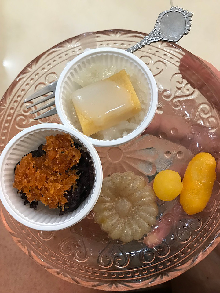 Dessert at 11am? This is my kind of food tour! We popped into a very popular and old dessert shop in the village called Boonsap Desserts to sample some traditional Thai sweets. The first sample was black sticky rice with dried shrimp and coconut on top. The shrimp and coconut mixture might seem odd, but it is perfectly salty and sweet. The second sample was Lucas’ favorite – white sticky rice with Thai custard and condensed milk. We also sampled a gelled banana cake, which was surprisingly delicious and Portuguese style golden drops, which were not my favorite. We didn’t sample mango sticky rice, but it still holds the number one spot in our hearts for Thai desserts.