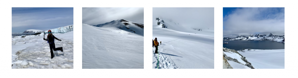 We made landfall on the Antarctic mainland at Brown Bluff, a stunning set of rocks from which the area gets its name and home to a sizeable colony of Adelie penguins. We again went mountaineering, admiring the views of the icebergs dotted with penguins and bay packed with sea ice. Later, we kayaked through the ice, admiring the quiet that was interrupted only by the sounds of calving glaciers. We collected some of the ice to add to our gin & tonics later on the ship. At Mikkelsen Harbour, as snow and hail pelted us, we visited a colony of gentoo penguins, admiring their strength in the face of the elements. Many of them walked to the end of the island and back to gather rocks for their nests, huddling together as they built up the areas that would house their eggs. At Half Moon Island, we were privileged to witness a colony of chinstrap penguins, oblivious to our existence as we skirted around to allow them to freely pass between us. The surrounding icescape was dotted with rocky pillars, a contrast to the white glacier. We truly felt small.
