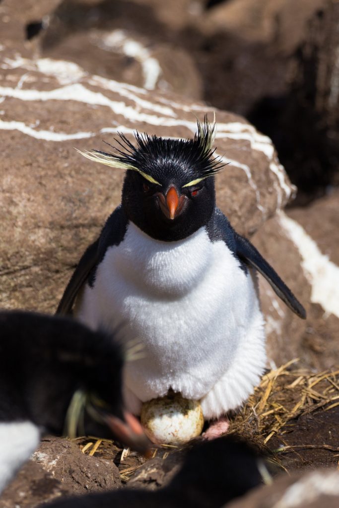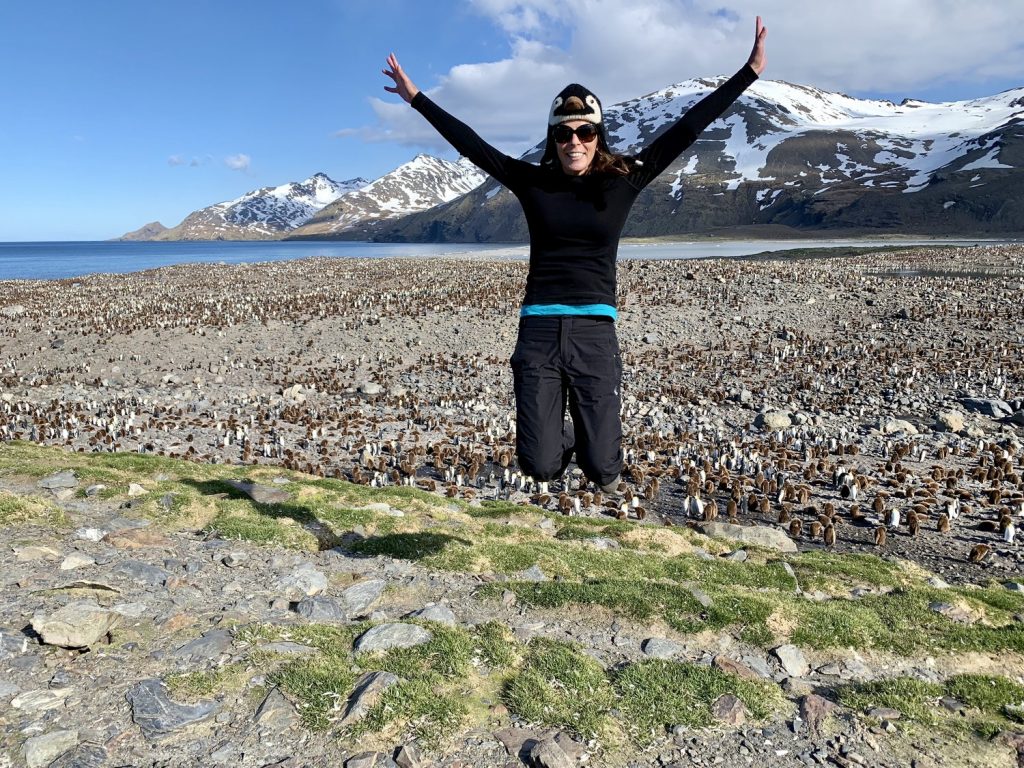 After setting sail from Ushuaia the following afternoon, we had over a day at sea before reaching our first destination, Carcass Island in the Falklands. Known for its population of Magellanic and gentoo penguins, the island features several beautiful yellow sand beaches reaching into light green-blue waters. After sitting on the beach watching the penguins diving in and out of the water, we hiked up to to the island’s highest point for a spectacular view of the surrounding islands and our ship in the distance. From Carcass Island, we sailed to West Point Island, inhabited by a couple who are the island’s caretakers and serve pastries and tea to visitors in their lush garden. The island is also home to several thousand breeding pairs of rockhopper penguins and light-mantled albatrosses. To reach them, we hiked across and the island and through some 2-metre high clumps of tussock grass. We were rewarded by seeing the birds sitting on their eggs, with albatrosses frequently swooping just inches above our heads.